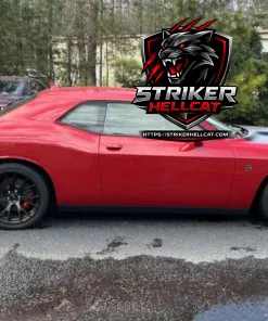 This 2015 Dodge Challenger SRT Hellcat has 7k miles, and it is provided by a supercharged 6.2-liter V8 linked to a six-speed manual transmission and a limited-slip differential. The car is finished in Redline Red Tri-Coat Pearl over Black Laguna leather, and exterior details include an SRT performance rear spoiler, HID Air-Catcher headlamps, and rear ParkSense parking sensors, while the cabin contains heated and ventilated front seats, an 18-speaker Harman Kardon sound system, and a UConnect 3C touchscreen infotainment system. Additional equipment includes a JLT Performance air-intake system, Brembo brake calipers, an SRT-tuned Bilstein suspension, Matte Black 20″ forged aluminum wheels, a ParkView rearview camera, and blind-spot monitoring.