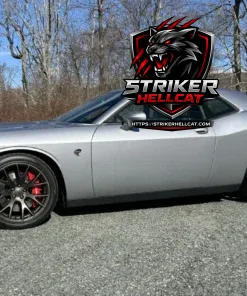 This 2016 Dodge Challenger SRT Hellcat is finished in Billet Silver Metallic over Black Premium Laguna leather and power is provided by a supercharged 6.2-liter V8 linked to an eight-speed automatic transmission and a limited-slip differential. Features include Brembo brake calipers, an SRT-tuned Bilstein suspension, 20″ Brass Monkey forged wheels, a power sunroof, HID Air-Catcher headlamps, heated and ventilated power-adjustable front seats, a Harman Kardon sound system, and a Uconnect infotainment system with navigation.
