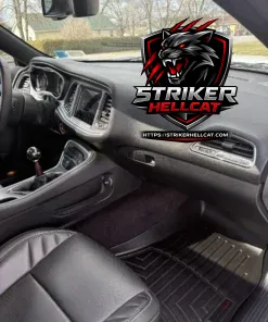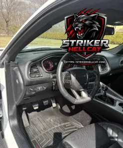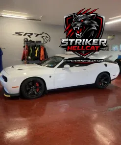 This 2017 Dodge Challenger SRT Hellcat was purchased new by the seller and was optioned with a six-speed manual transmission, which is paired with a supercharged 6.2-liter V8. Having 6k miles, it is finished in White Knuckle and is further equipped with black Laguna leather upholstery, a limited-slip differential, Brembo brake calipers, an SRT-tuned Bilstein suspension, 20″ lightweight aluminum wheels, a power sunroof, HID Air-Catcher headlamps, heated and ventilated front seats, a Barton shifter, a Harman Kardon sound system, and a Uconnect infotainment system with navigation.