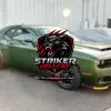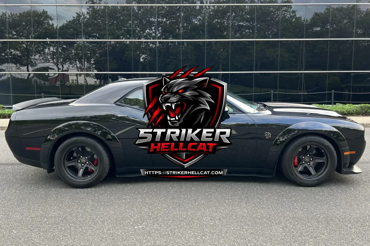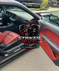This 2021 Dodge Challenger SRT Super Stock is finished in Pitch Black over Demonic Red Laguna leather upholstery and is powered by a supercharged 6.2-liter V8 linked to an eight-speed automatic transmission and a limited-slip differential. Performance features include launch control with Launch Assist, a Super Stock adaptive-damping suspension, an SRT Power Chiller, a line locker, 18″ Granite wheels, and Brembo brake calipers. The car has 1,800 miles and is further equipped with HID Air-Catcher headlamps, widebody fenders, heated and ventilated seats, a cargo net in place of the rear seat, and a Uconnect infotainment system.