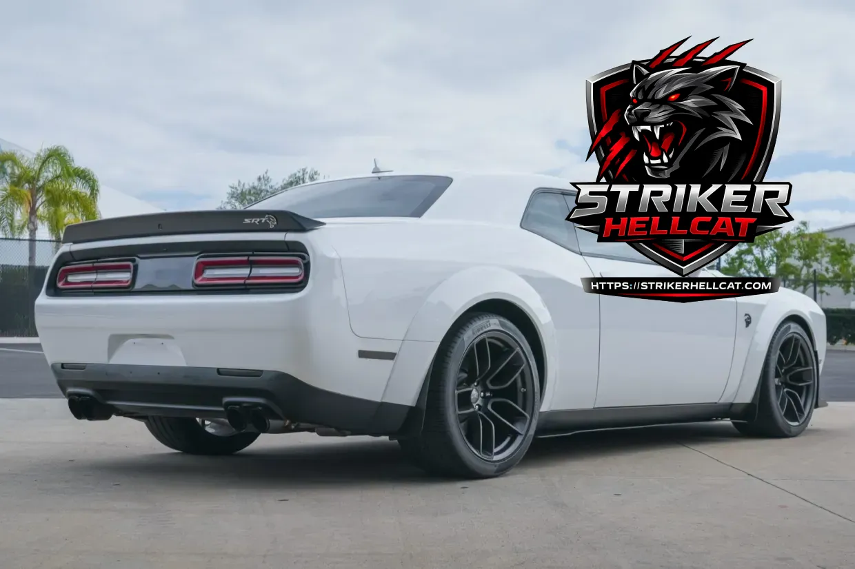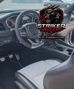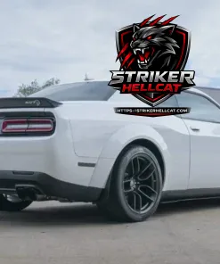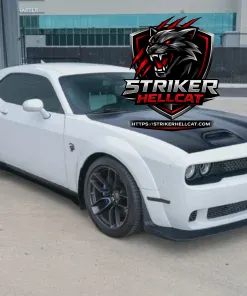 This 2023 Dodge Challenger SRT Hellcat Widebody Jailbreak Last Call is finished in White Knuckle over a Black and Hammerhead Gray interior, and is powered by a supercharged 6.2-liter V8 linked to a six-speed manual transmission and a limited-slip differential. It features widebody fenders, HID Air-Catcher headlamps, Widebody competition suspension, and 20″ forged wheels along with heated and ventilated front seats in Laguna leather, carbon-fiber interior trim, a Harman Kardon sound system, and UConnect infotainment. A modified exhaust system and a Barton short shifter are additional details.