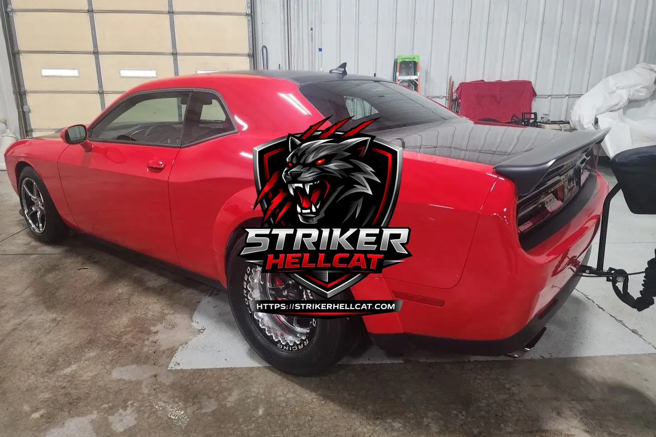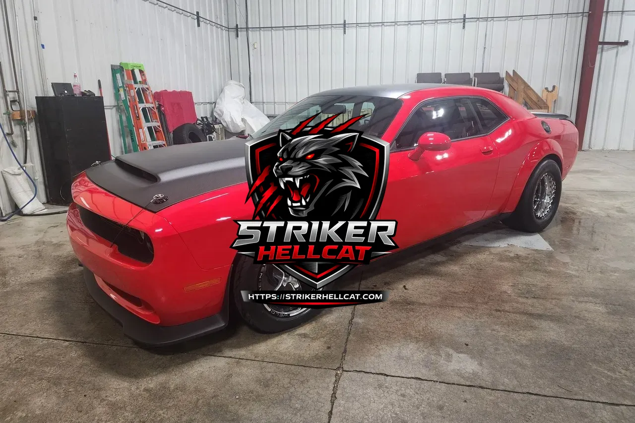 This 2022 Dodge Challenger SRT Super Stock modified with a 7.0-liter Mopar Direct Connection 1500 V8 crate engine and a Pure Drivetrain Solutions 8HP90 eight-speed automatic transmission.